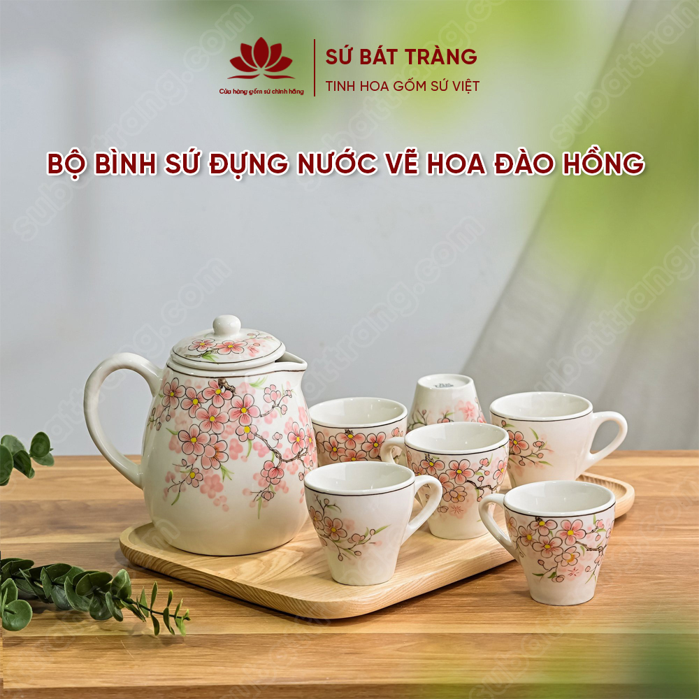 The Bat Trang ceramic hand-painted pink peach motif water bottle set is extremely delicate and sharp, and is one of the hot products that has been loved and sought after by many customers recently.